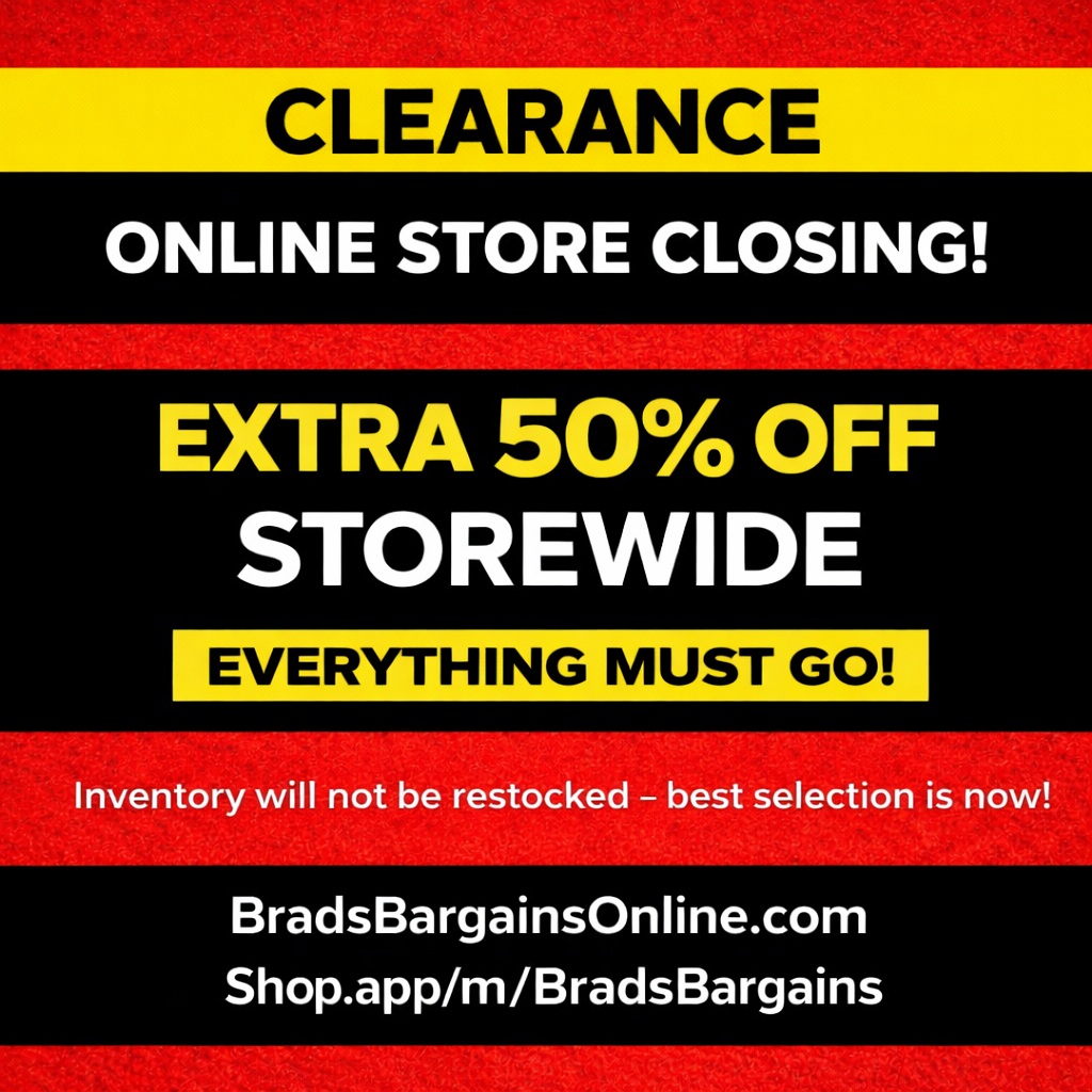 Please note all sales are now final and all previous discount codes are now void as well. Clearance discounts are applied automatically to items in cart. Please add an item to your cart to see the discount applied. Due to high demand during clearance, your order may take a day longer than usual to be ready for pickup, ship, or be delivered. Thank you for your patience and your business!