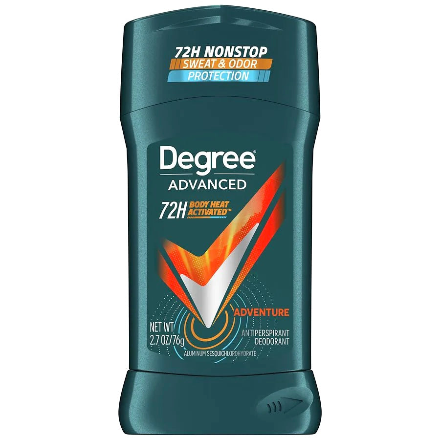 Experience everyday adventures without worrying about sweat and odor. Degree Men Adventure Advanced Protection Antiperspirant Deodorant Stick offers 72-hour odor protection and superior motion-activated sweat protection. With a powerful and masculine fragrance featuring clean citrus, energizing fresh pepper, and long-lasting woods and musk notes, this antiperspirant deodorant won't let you down. Thanks to our innovative Body Heat Activated technology, it will keep working no matter how much you move. Stay fresh and confident on all your adventures with Degree Men Adventure Antiperspirant Deodorant.