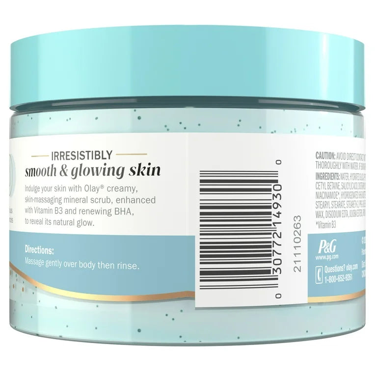 Enhance your skin's natural radiance with Olay's Indulgent Mineral Scrub Body Wash. Featuring guava and coconut essences, this exfoliating formula utilizes Vitamin B3 BHA complex and exfoliating pearls to rejuvenate and smooth skin with every wash. Use this indulgent body wash to activate the exfoliating pearls and gently remove dead skin cells for improved vitamin absorption. Experience irresistibly smooth, glowing skin with Olay.