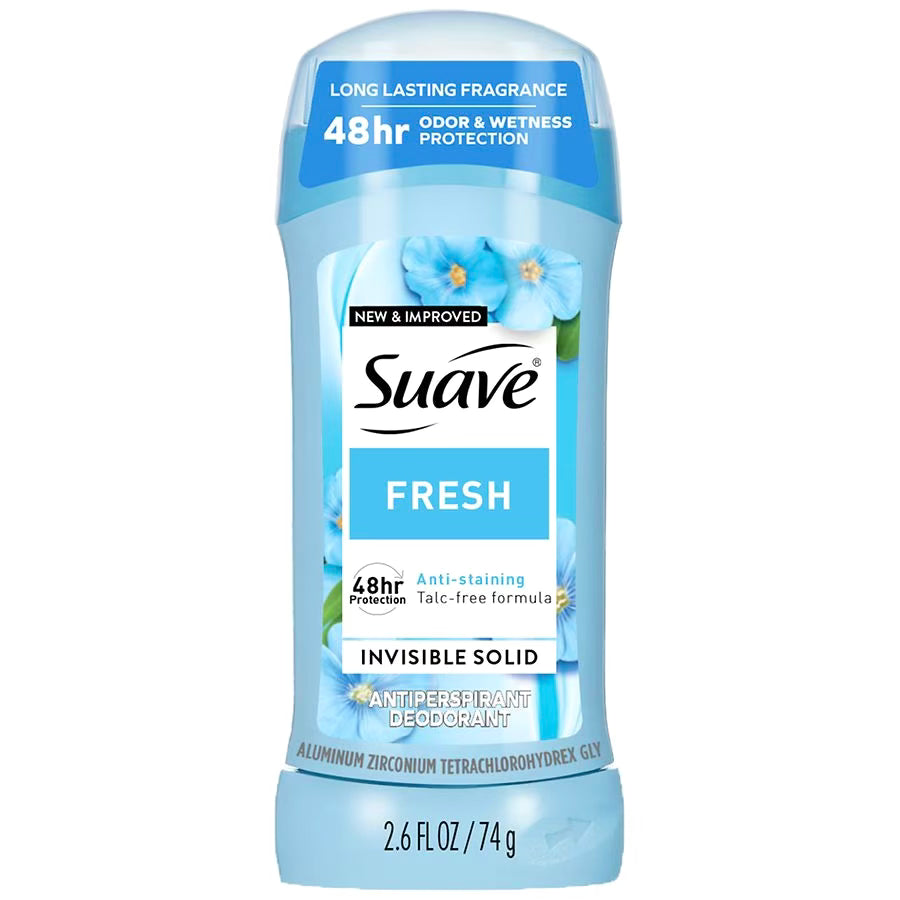 This Suave invisible solid antiperspirant deodorant guarantees 48-hour protection against sweat and odor, with a shower fresh scent. Its talc-free formula contains 20% more sweat-stopping ingredients than the original, providing maximum effectiveness while maintaining comfort. The gentle, non-staining deodorant stick is perfect for sensitive skin and will keep you feeling dry and comfortable all day. Made in the United States.