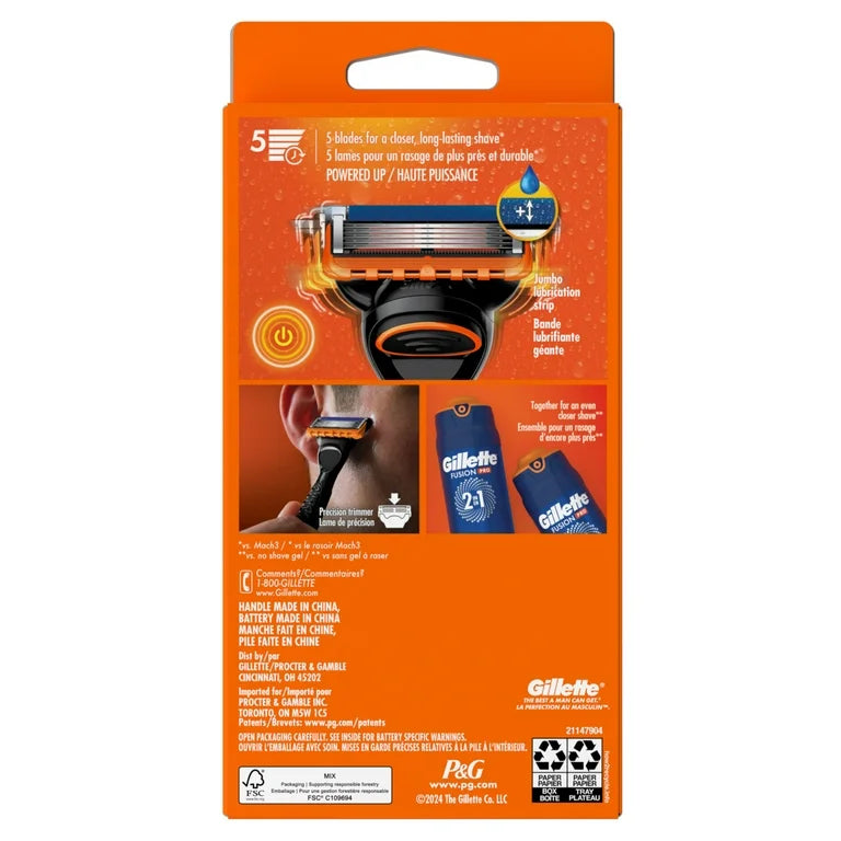 Gillette Fusion5 Power Shaving Razor for Men with Larger Lubrication Strip and Precision Trimmer, 1.0 set